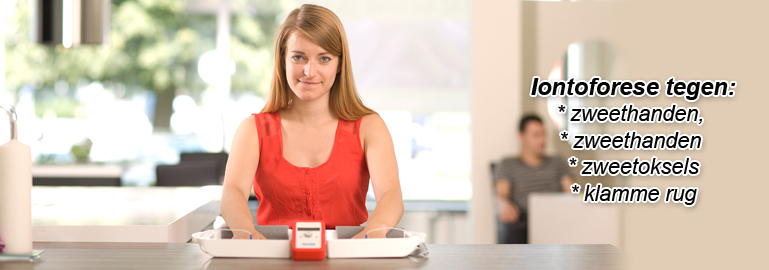 Het Ionto Mini iontoforese apparaat biedt dé oplossing tegen overmatig zweten. Iontoforese is een bewezen effectieve behandeling tegen transpiratie / hyperhidrose. Je hebt geen doktersrecept nodig. Iontoforese wordt door vele dermatologen geadviseerd bij overmatige zweethanden, zweetvoeten of zweetoksels. Met dit betrouwbare iontoforese apparaat kun je eenvoudig zelf thuis aan de slag. Het hulpmiddel is medisch gecertificeerd, betrouwbaar, gebruiksvriendelijk, pijnvrij en werkt zeer effectief tegen:Iontoforese apparaat aanbieding